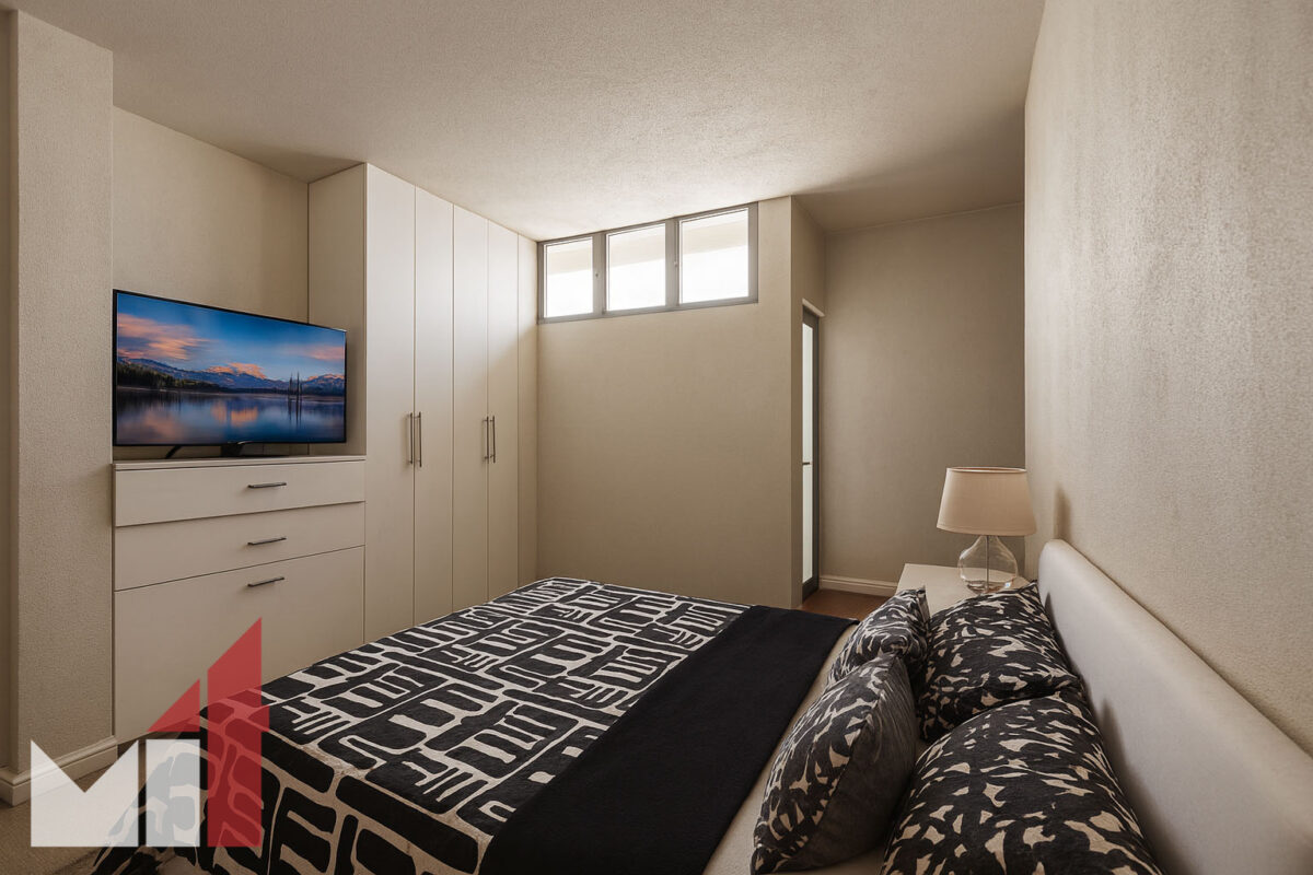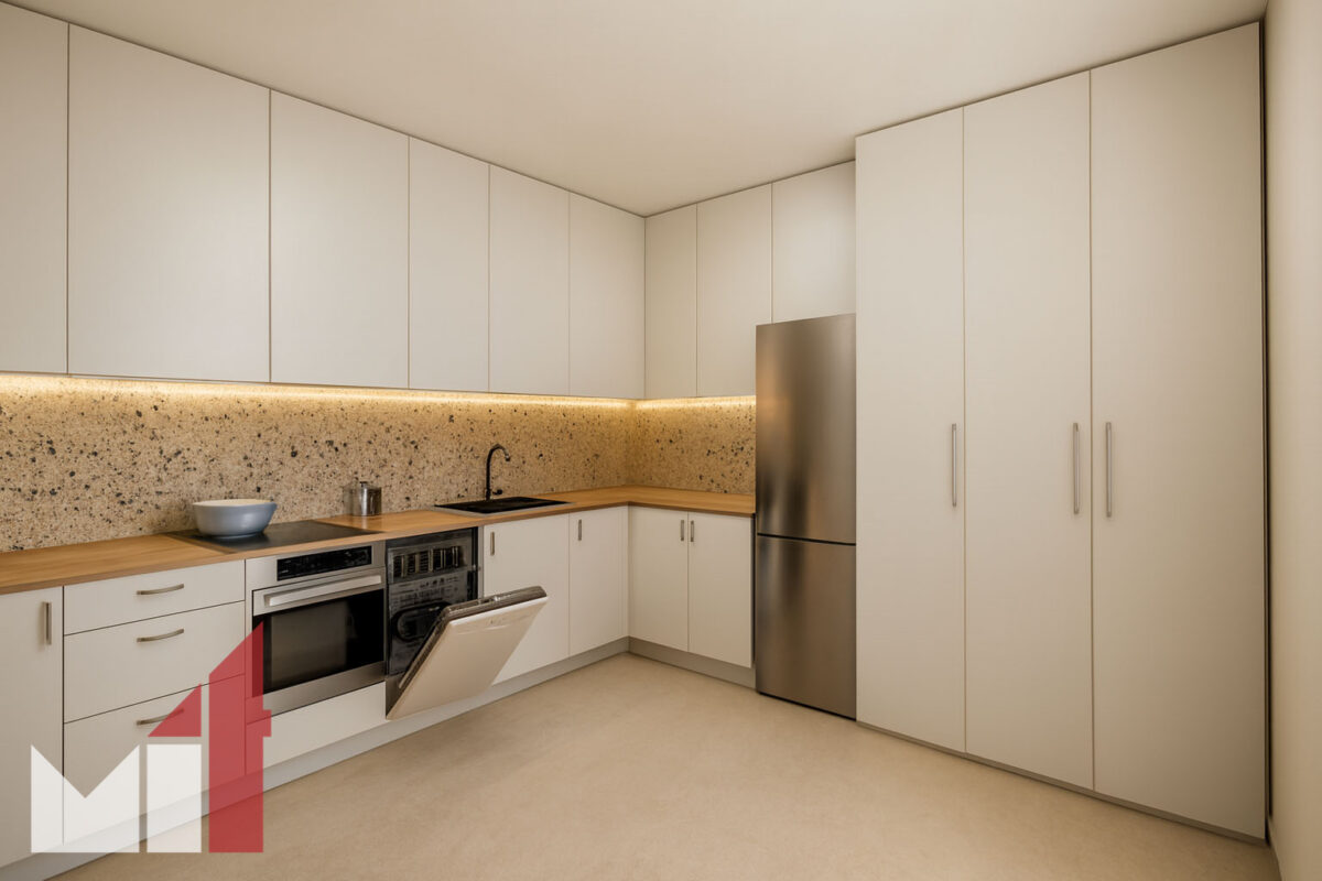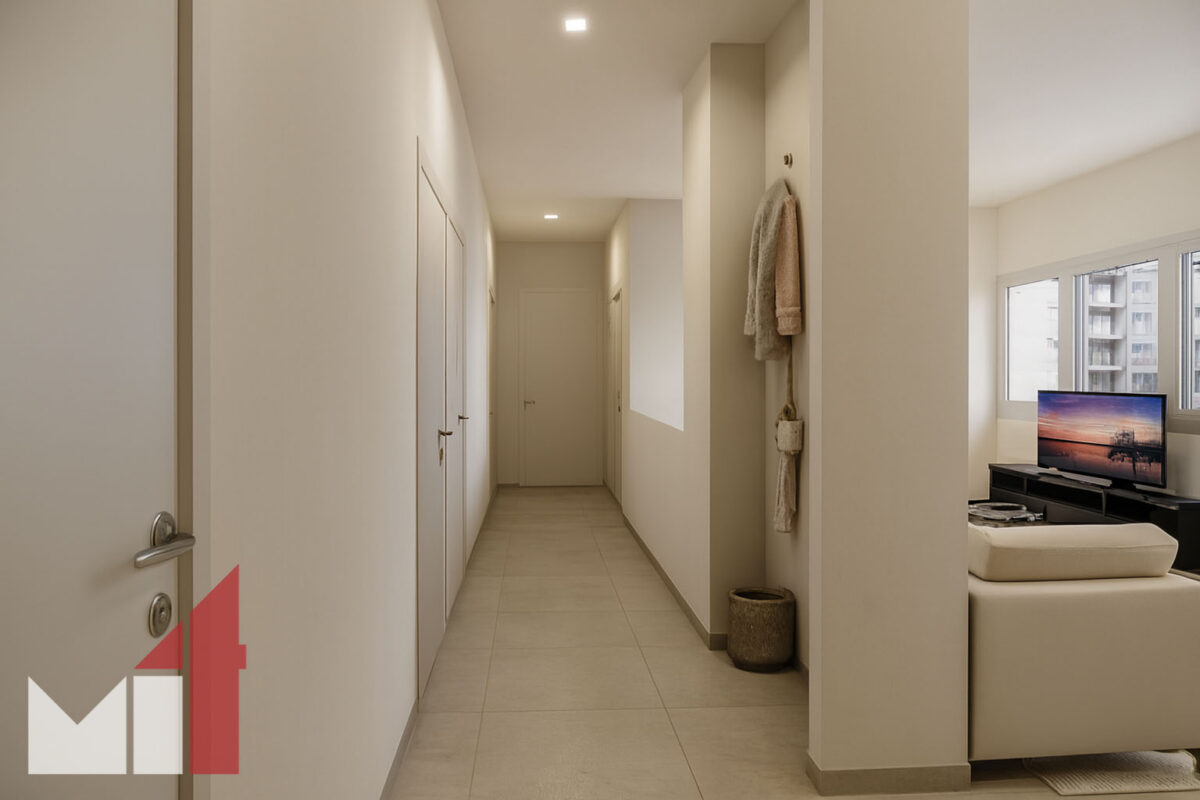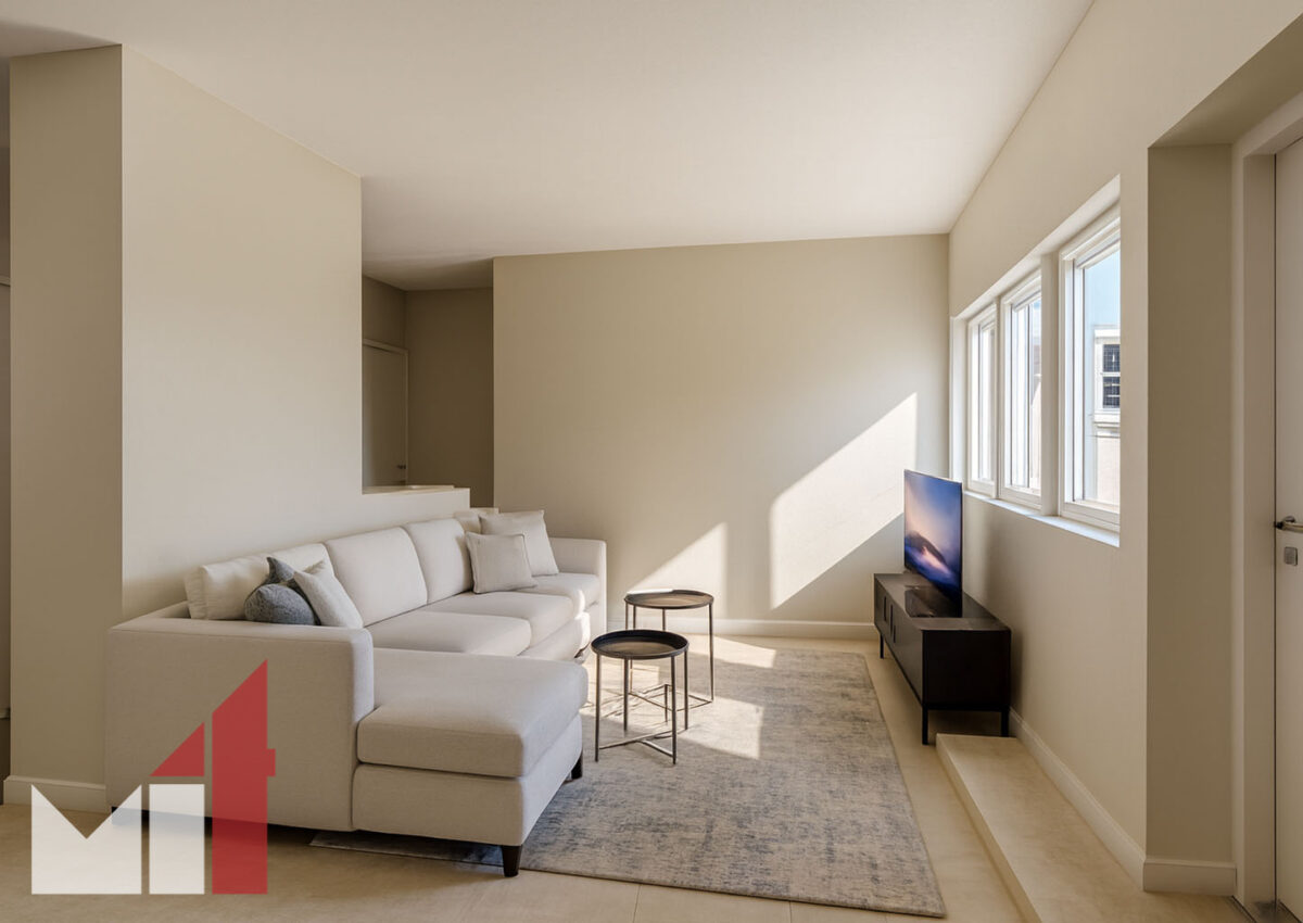 The apartment is fully renovated and consists of a spacious living room, a separate kitchen, three bedrooms and two bathrooms.