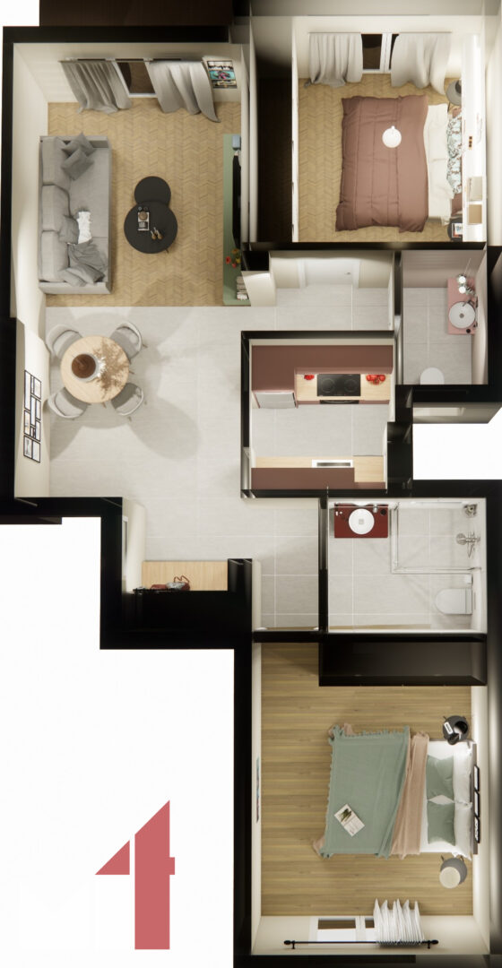 The apartment will be delivered fully furnished and equipped with all the electrical appliances.