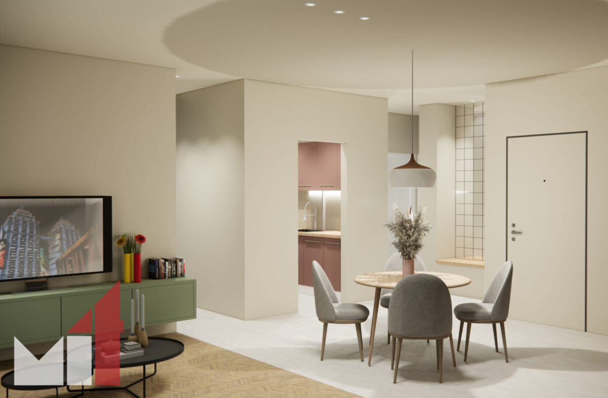 6An apartment in Exarcheia of 70 m2 located on the sixth floor of a residential building.