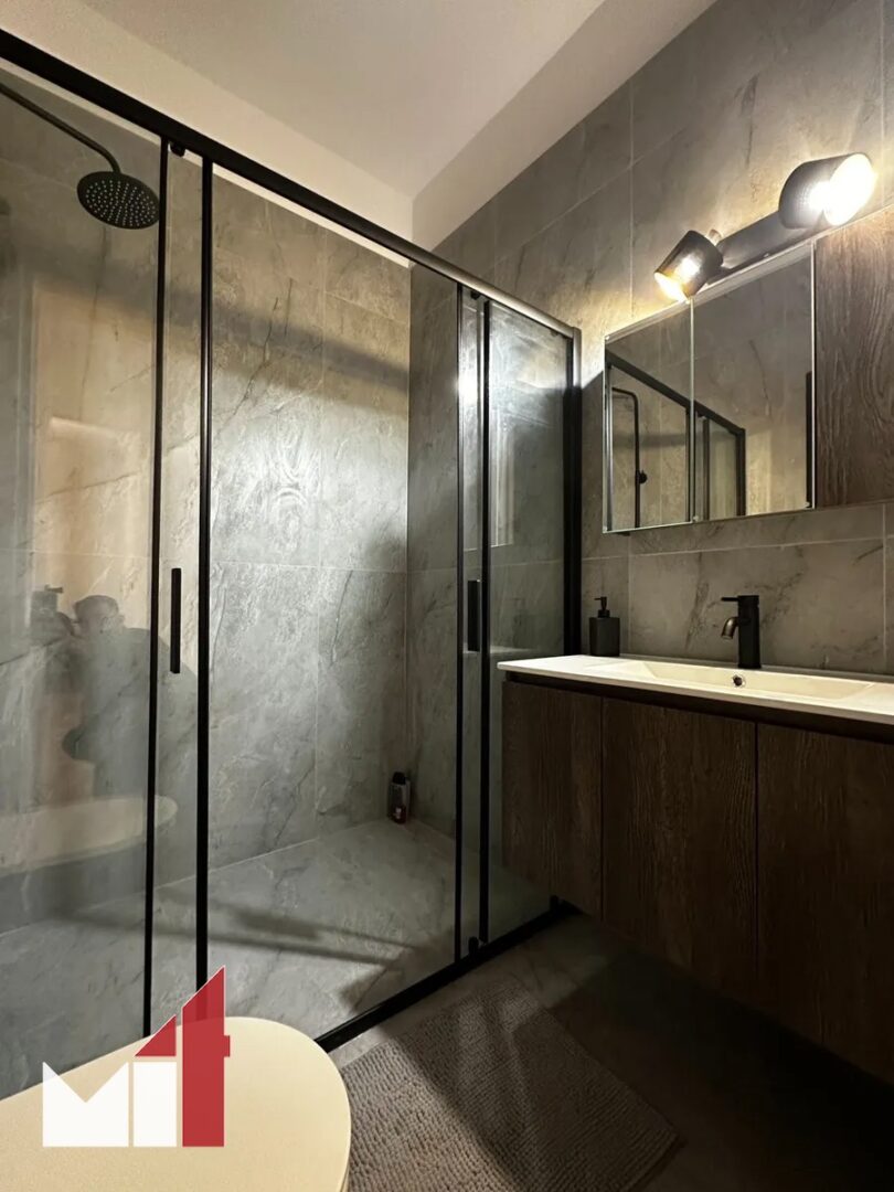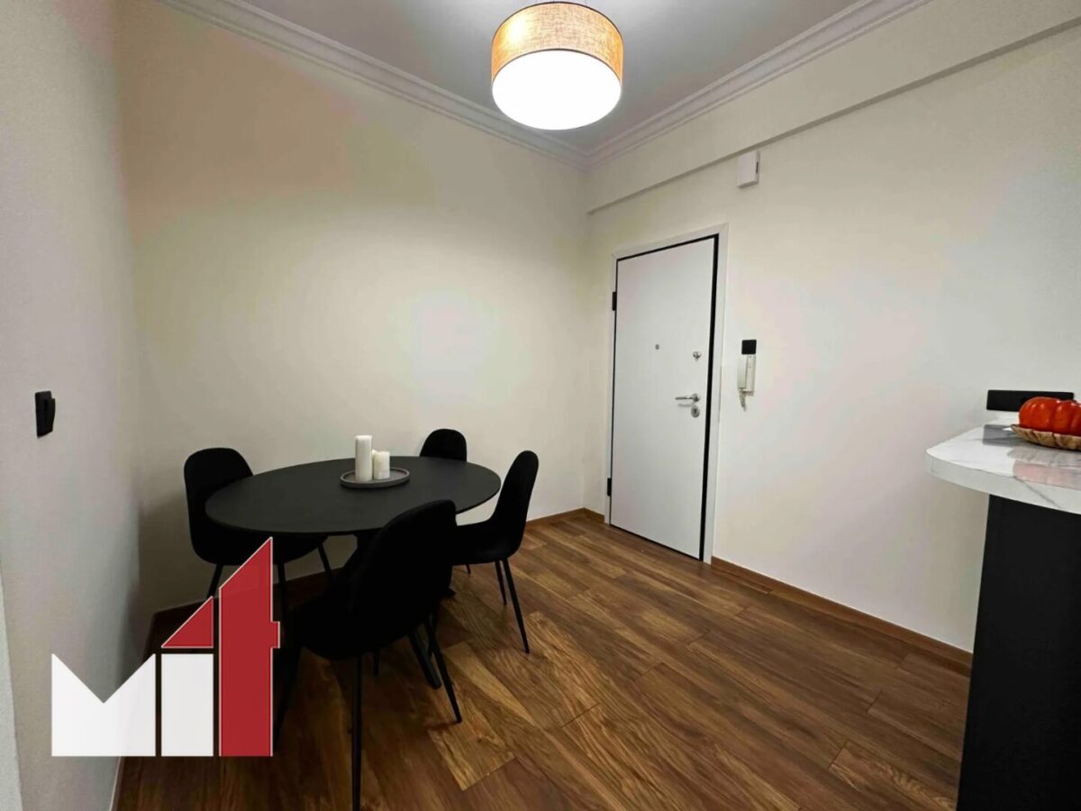 The luxurious front-facing property is fully furnished and equipped and consists of a spacious entrance hall with a dining table, a living room with an open plan kitchen, a bedroom with new walled-in closets and a spacious bathroom.