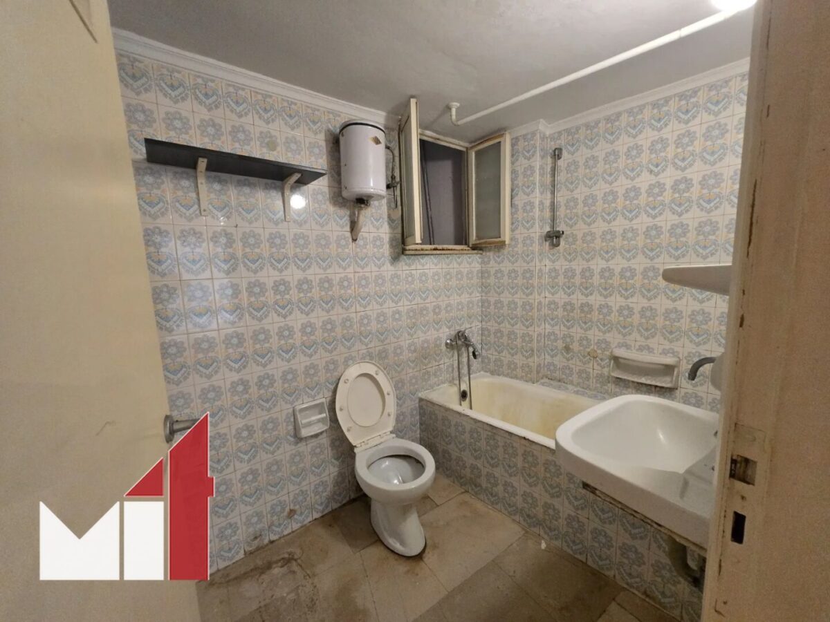 Renovation is required, while additional features include a private yard of 17 m2, awnings, new plumbing installations, an overhead storage loft, a new building’s elevator and central petrol heating.