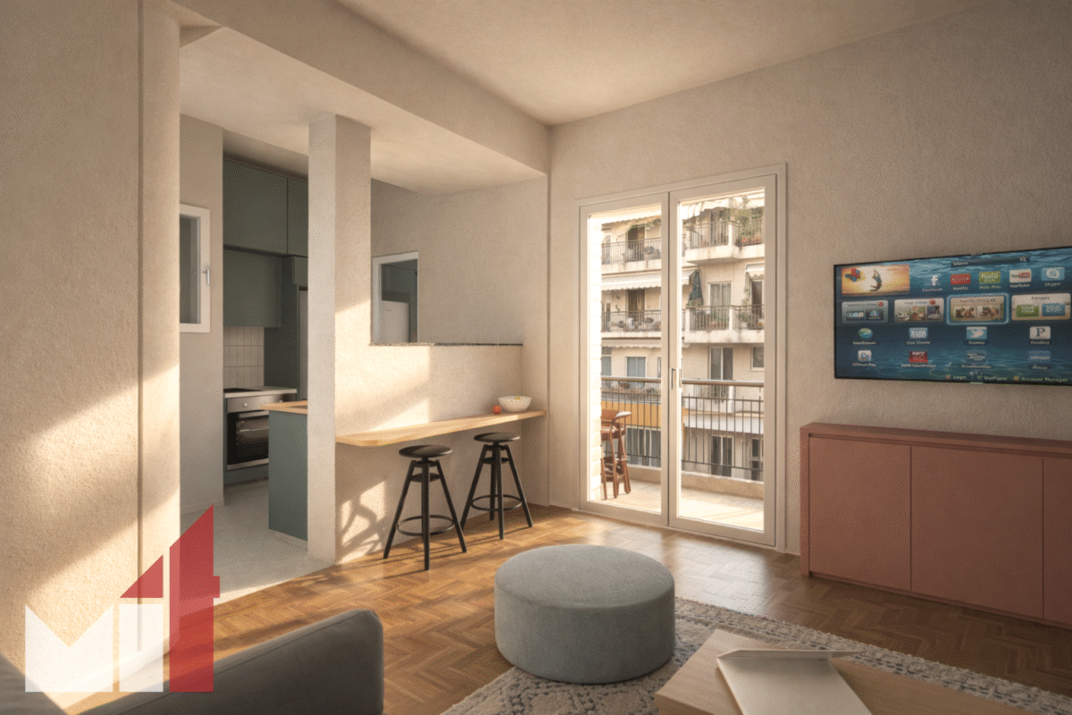 5An apartment in Kolonaki of 41 m2 located on the fifth floor of a residential building.
