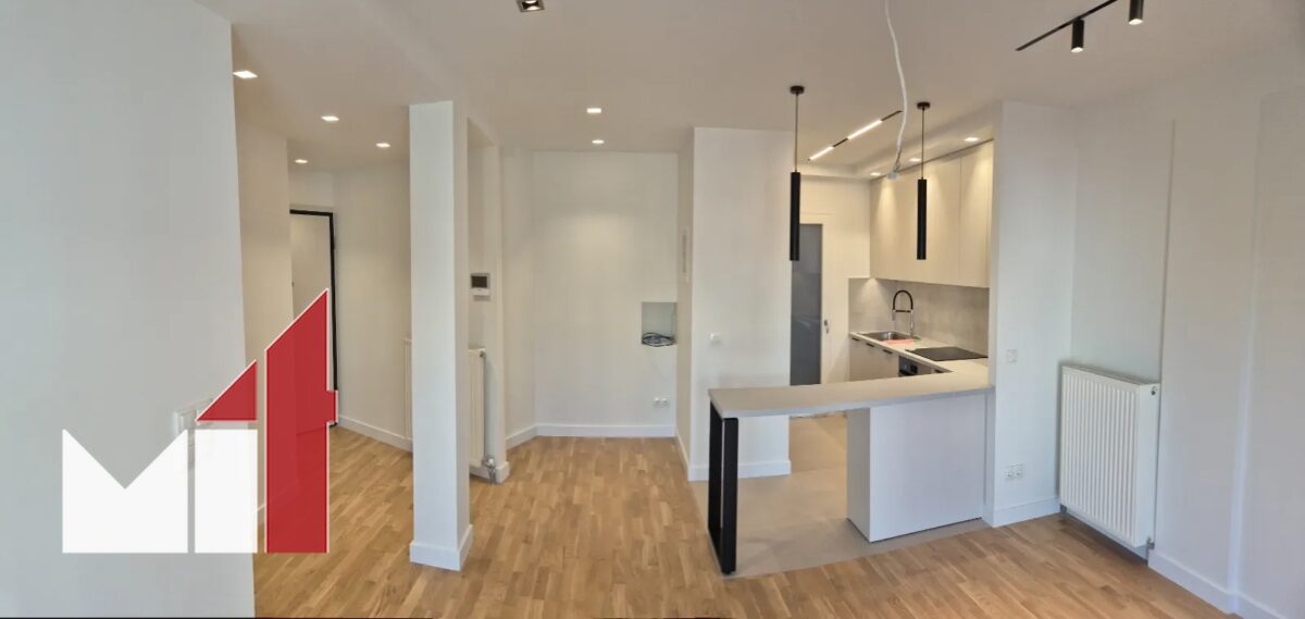 The meticulously designed property is totally refurbished and consists of a living room with an open plan kitchen, one beautiful bedroom with new walled-in closets and one bathroom.
