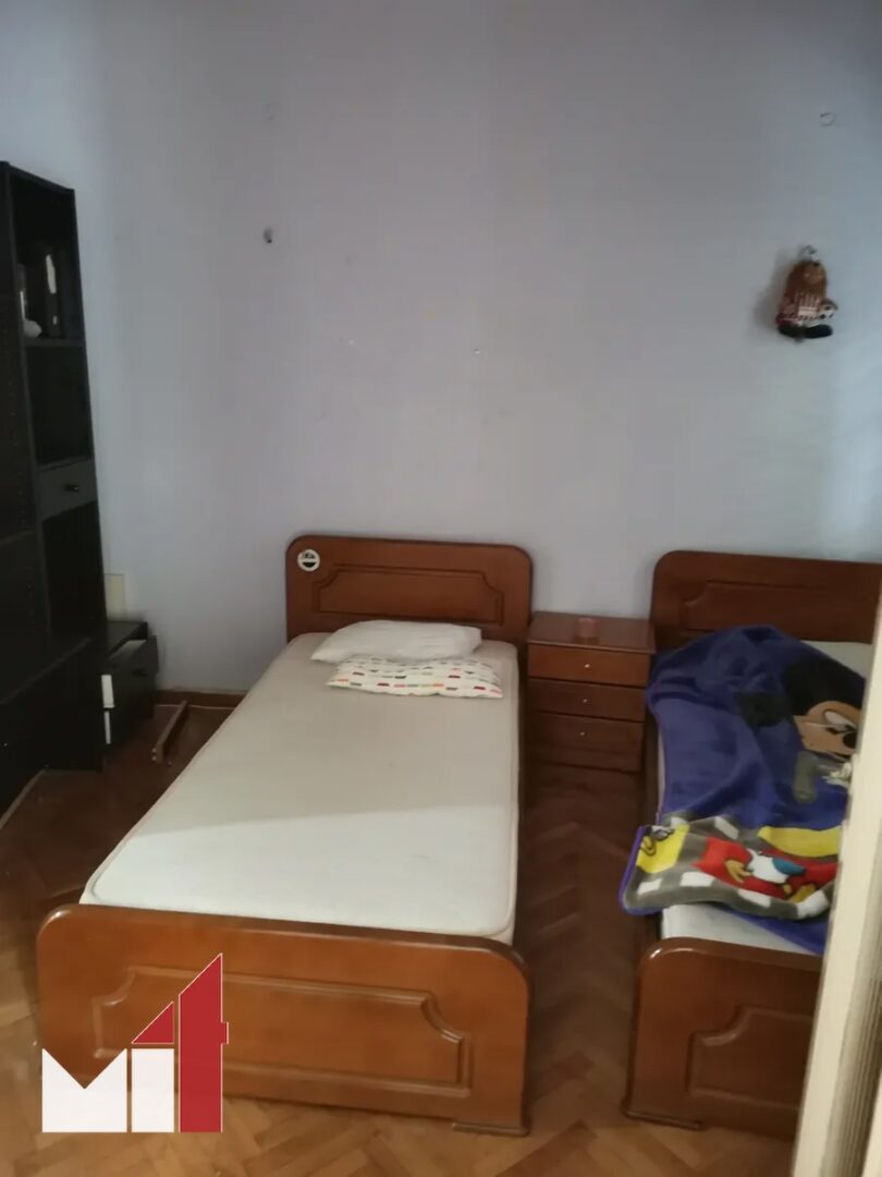 The traditional-layout property requires renovation and consists of a welcome hall with a long corridor, a living room, a separate kitchen, two bedrooms and one bathroom.