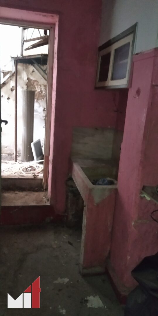 The traditional-layout property requires renovation or partial demolition and consists of a living room, a separate kitchen with access to the garden, three bedrooms, one bathroom and one storage room.