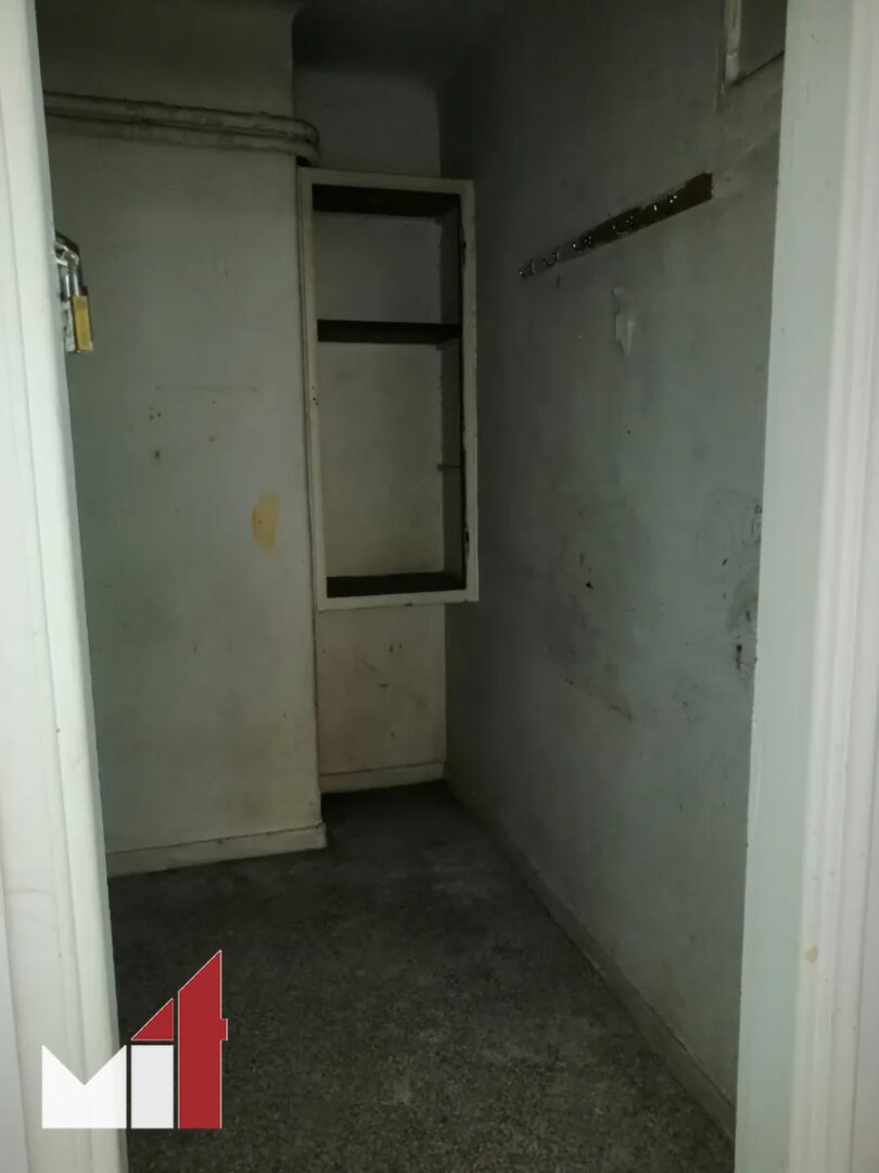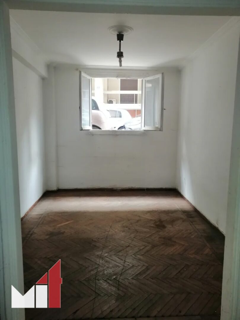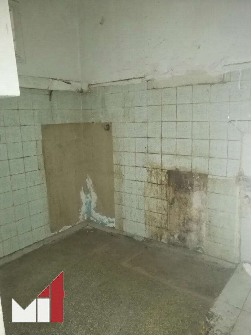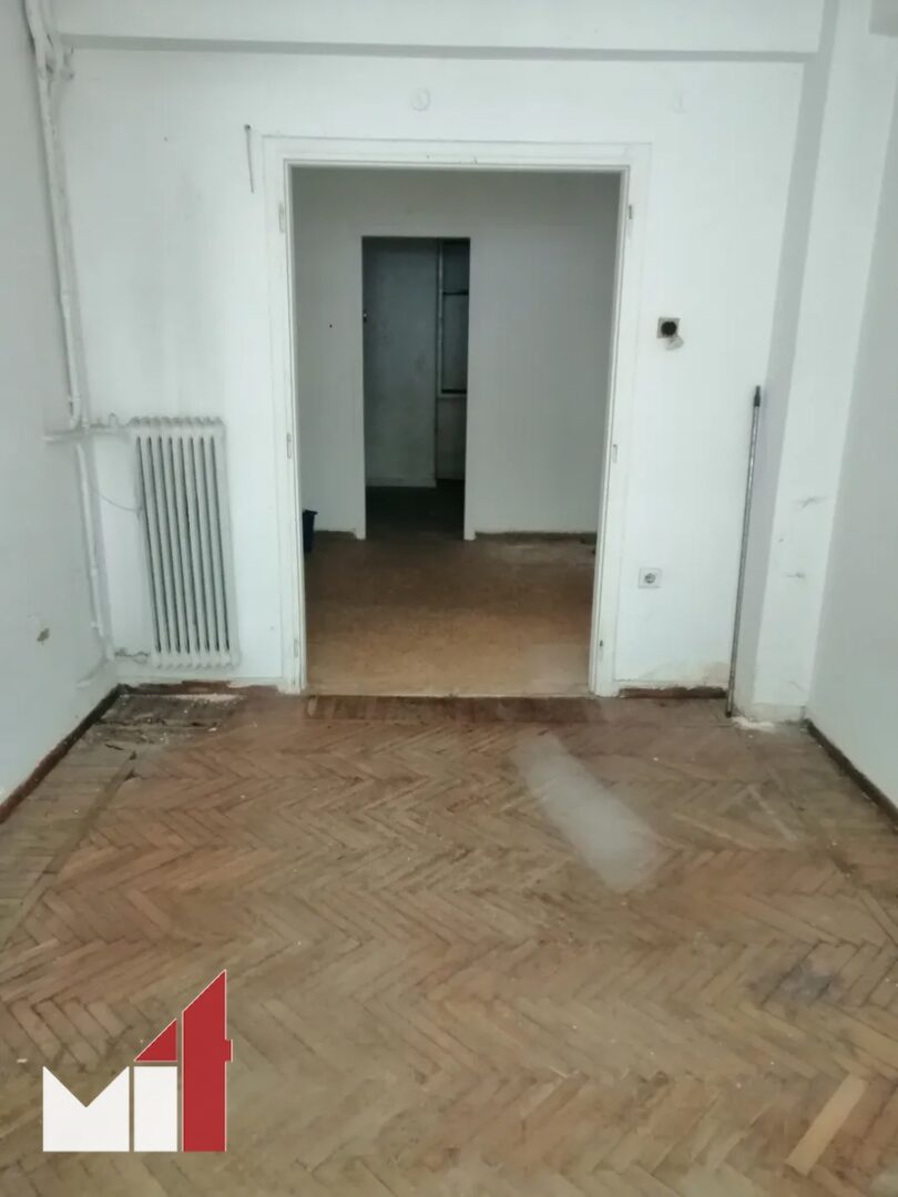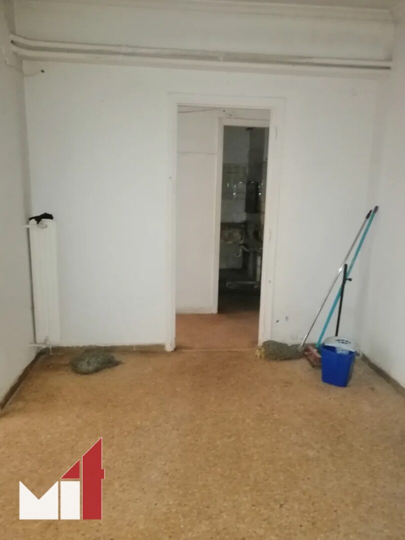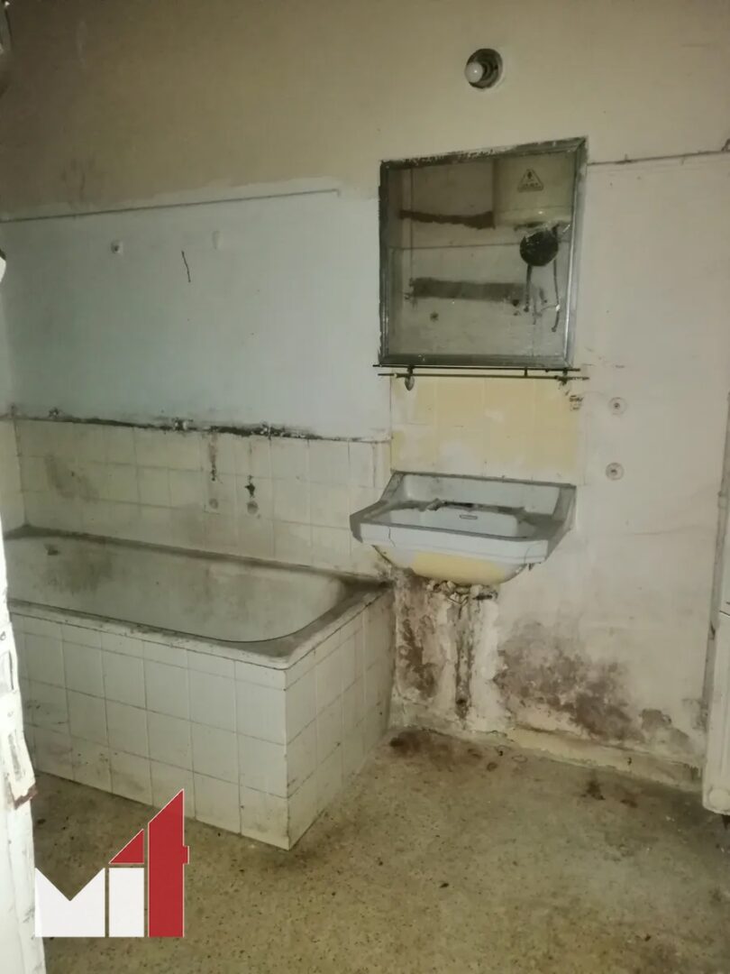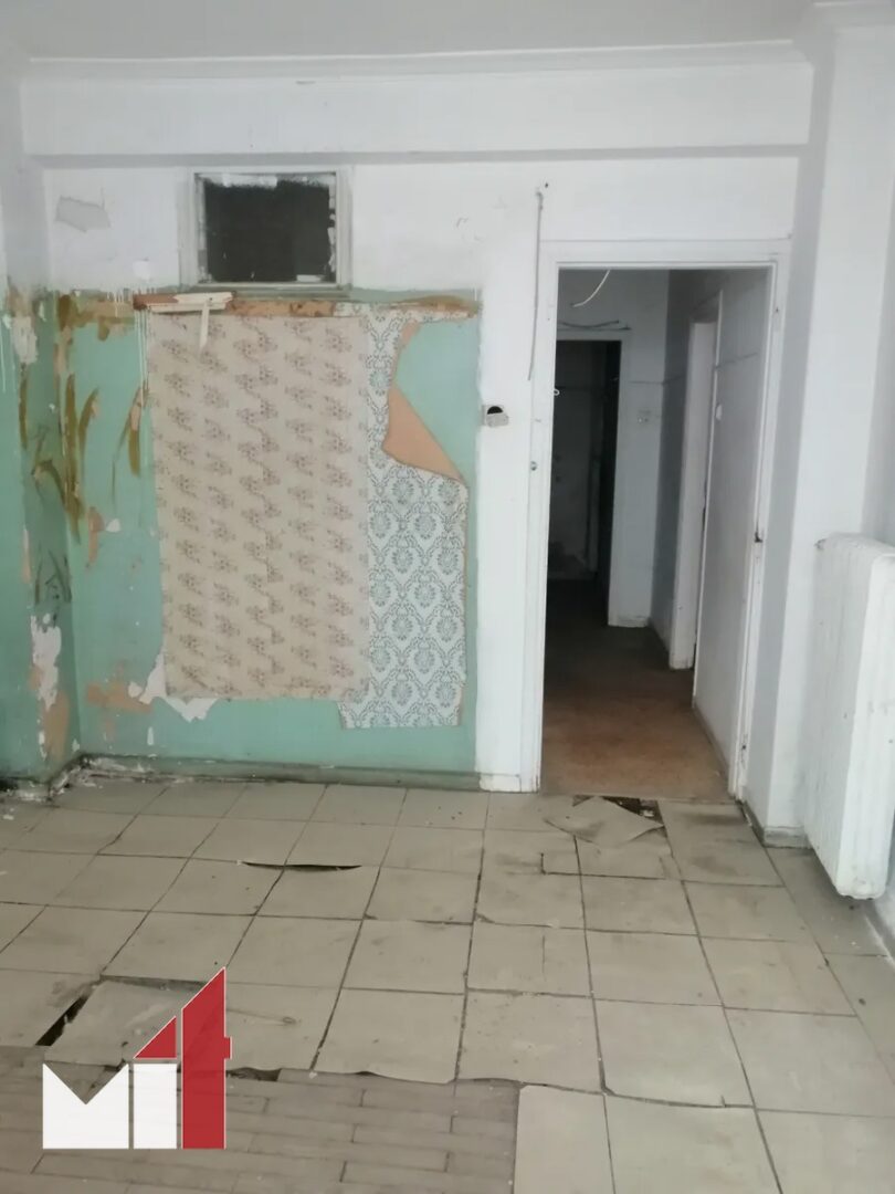 The apartment requires renovation and consists of a wide living room, a separate kitchen, a bathroom and a bedroom.