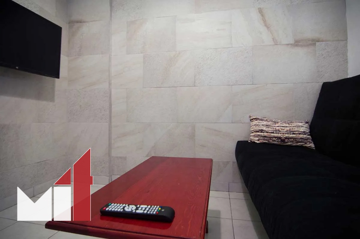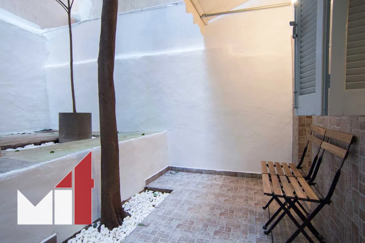 The private access to a spacious backyard full of green should be highlighted, as well as, that it is offered furnished and equipped with electrical appliances.