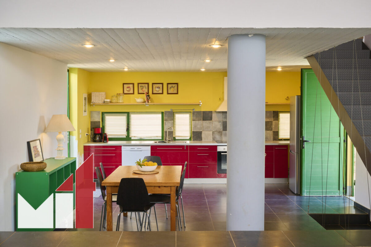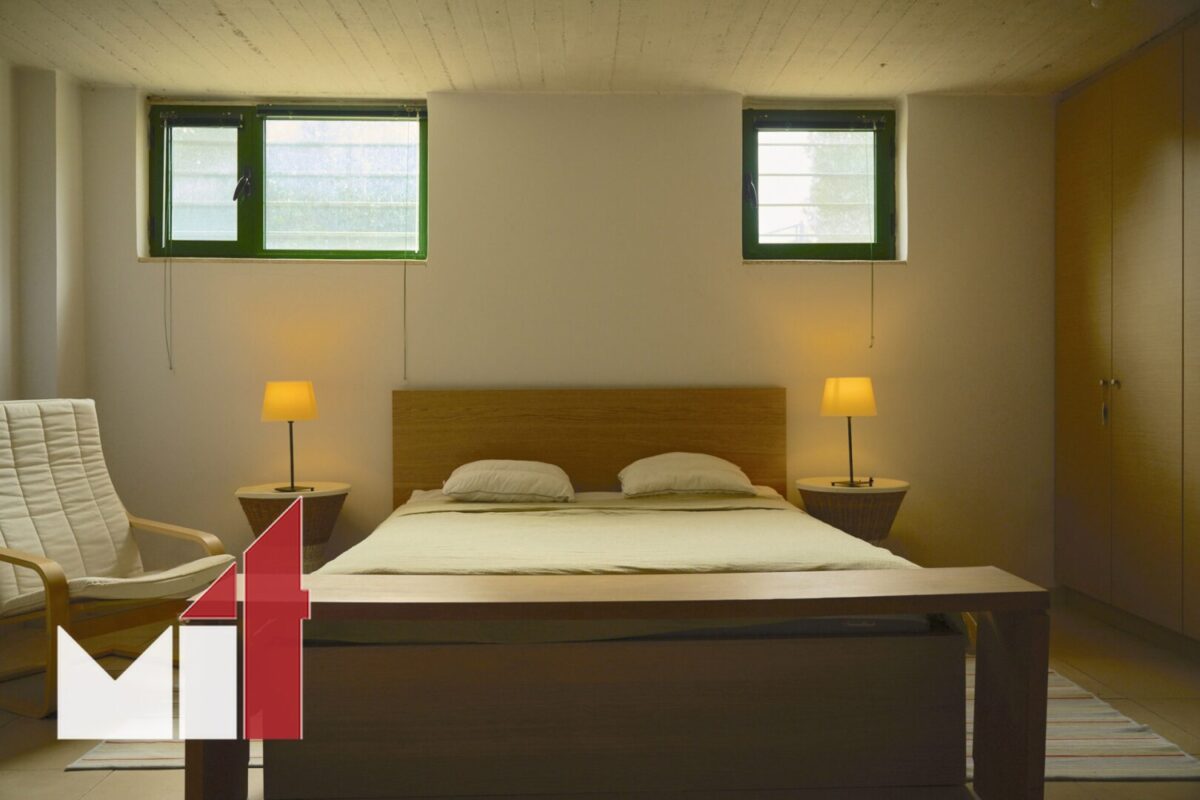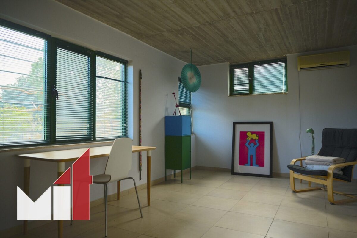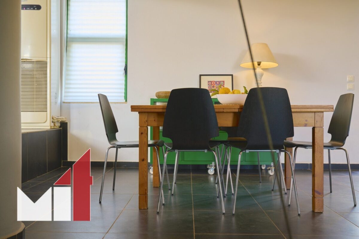It consists of three floors: The ground floor includes the entrance, an open-plan kitchen, a dining area, a living room with a fireplace and direct access to the terrace & garden. The first floor includes one bedroom, one bathroom, a small area that is used as a study, which overlooks the living room, and a large balcony. Finally, the lower ground floor consists of two bedrooms, two storage units, one bathroom and access to the garden.