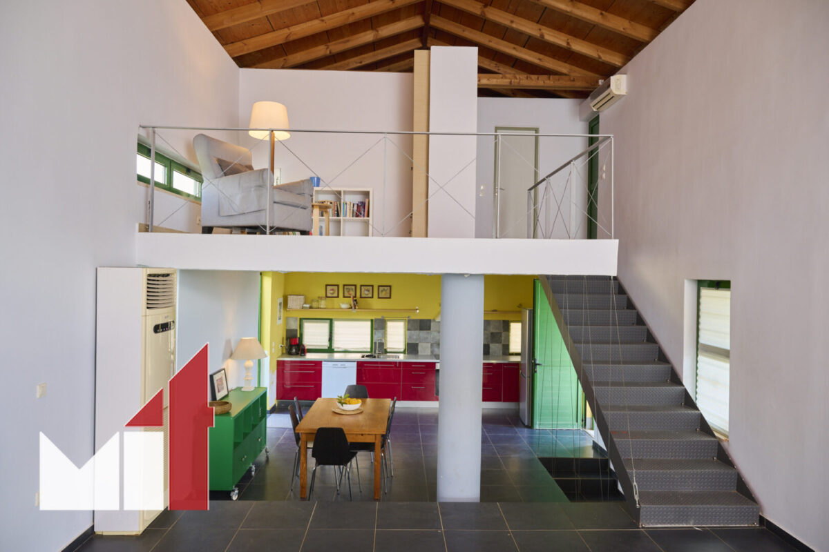 The closest seaside is the Legrena Beach, located approx. 3km away or 5′ by car.