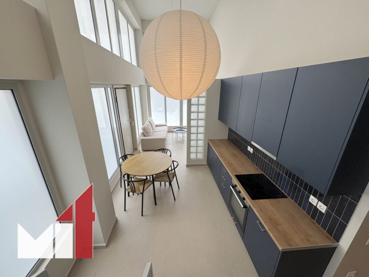 This fully furnished and equipped front-facing property consists of a comfortable living room with an open plan kitchen, two bedrooms and two bathrooms. The two levels are connected via an interior staircase.