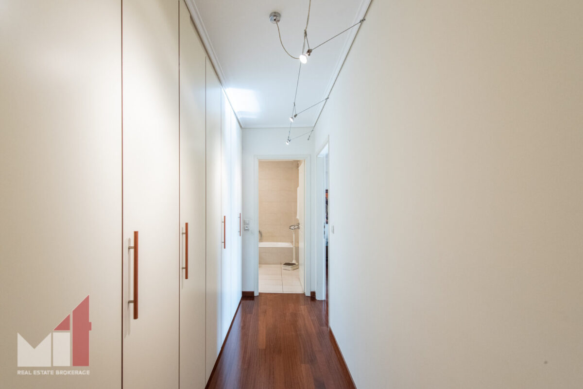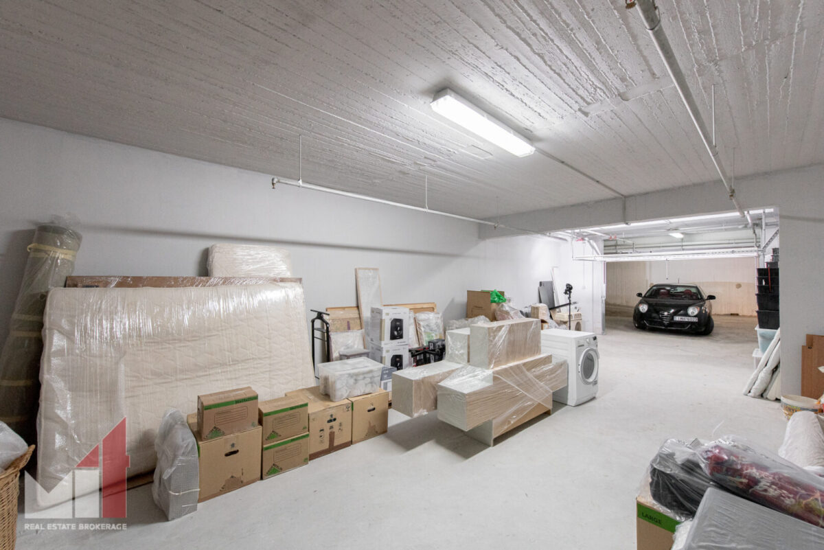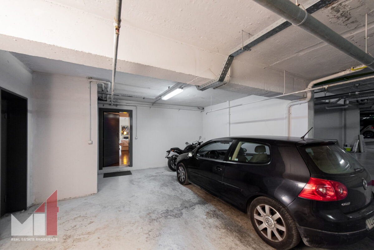 Extra features include a security door, an autonomous heating, double glass windows with aluminum frames, electric shutters, alarm system, two parking spaces and a storage room of 65 m2.