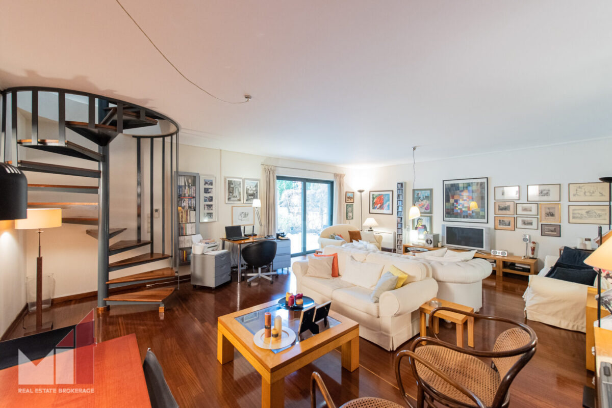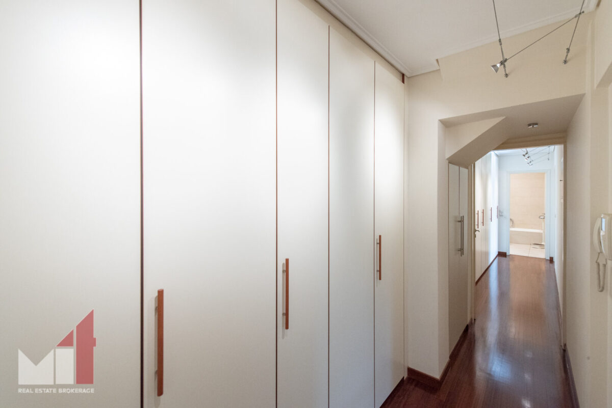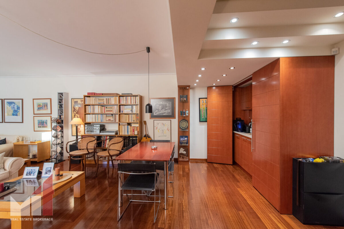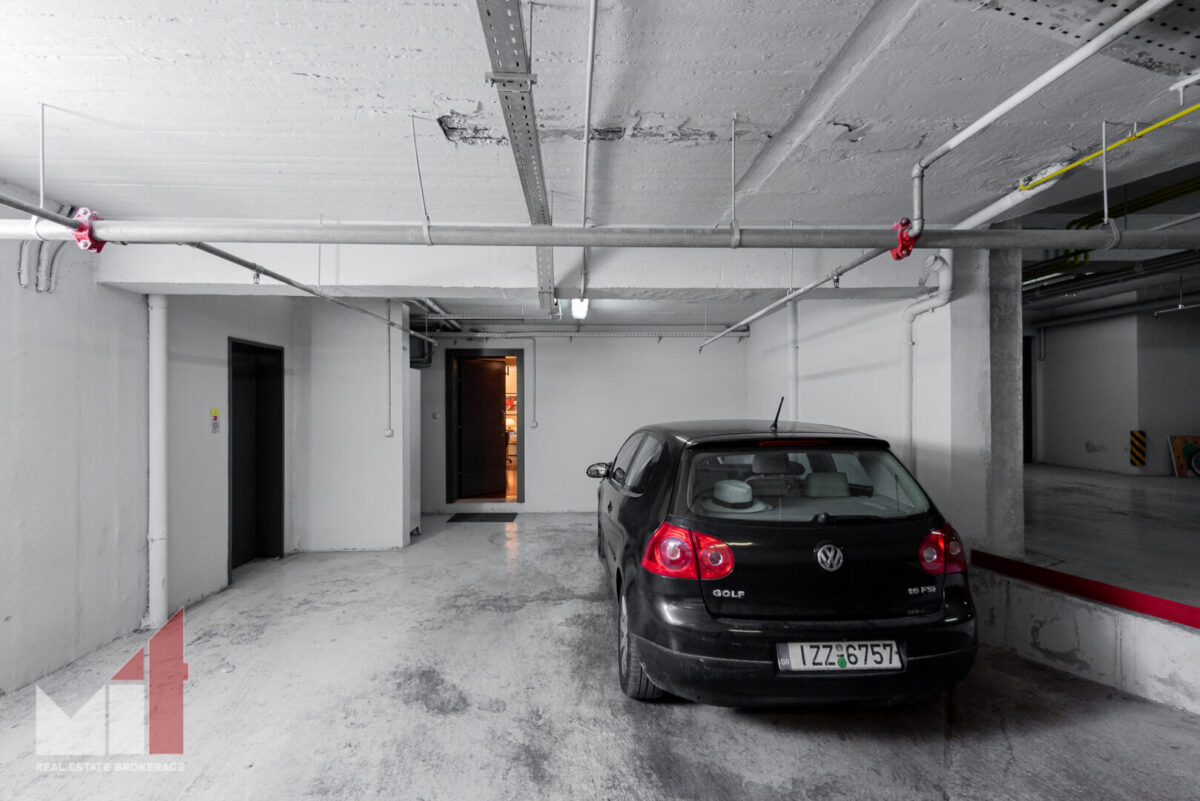 Extra features include a security door, an autonomous heating, double glass windows with aluminum frames, electric shutters, alarm system, two parking spaces and a storage room of 65 m2.