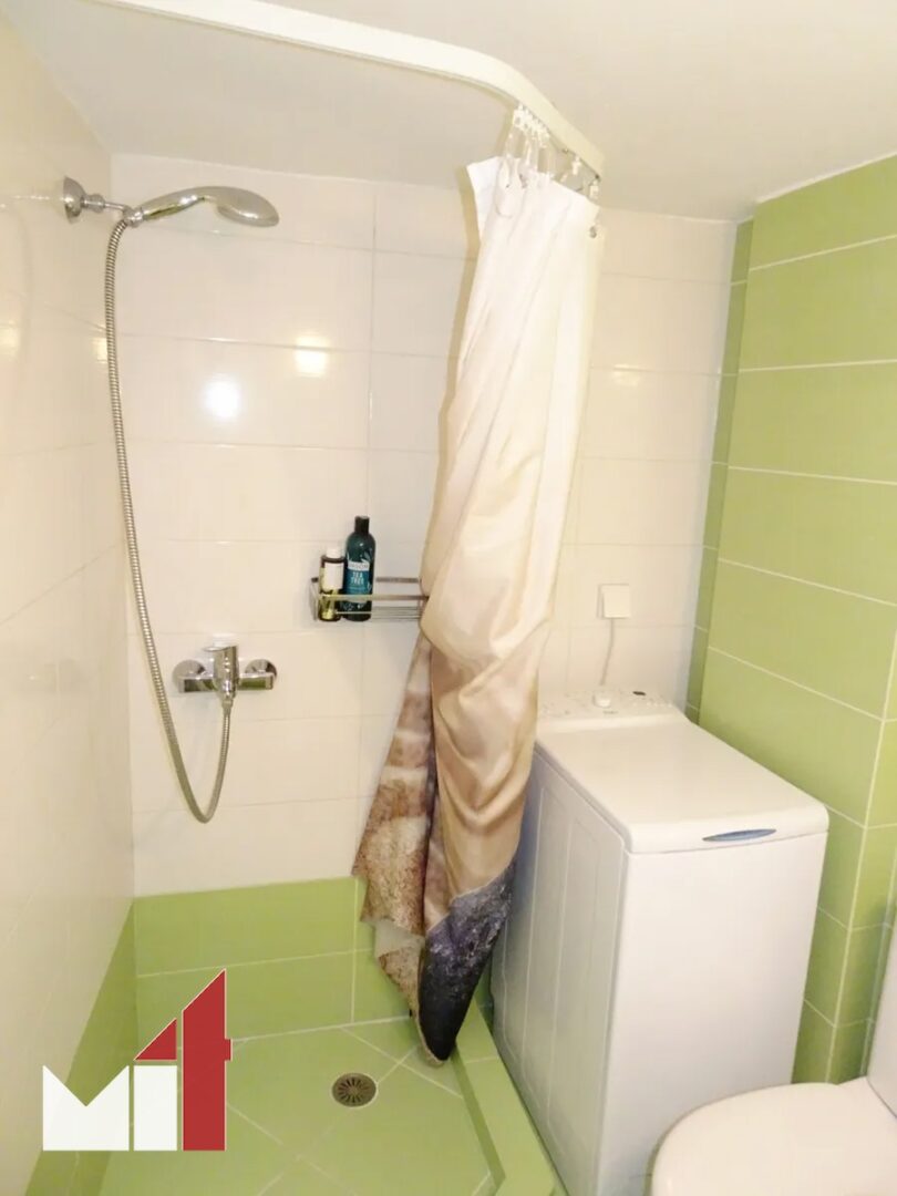 Additional features include a security door, a balcony with new awnings, an A/C unit, a laundry machine, a bed with a mattress and central petrol heating.