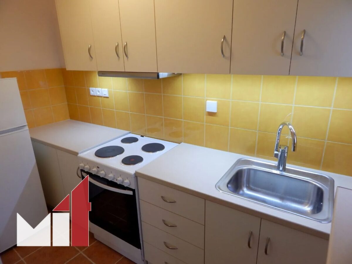 The bright rear-facing property is in good condition, featuring a room serving both as living room and bedroom, a separate kitchen and a bathroom with an attic space on top.